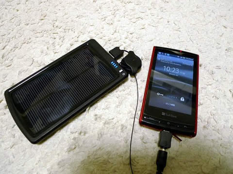 と、いう事で注文しておいたソーラー式(USBで逐電可能)な、充電器が届きました。