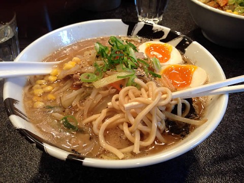 ぱっと見、野菜たっぷりの味噌ラーメンといった感じです。コーンも乗っているし。