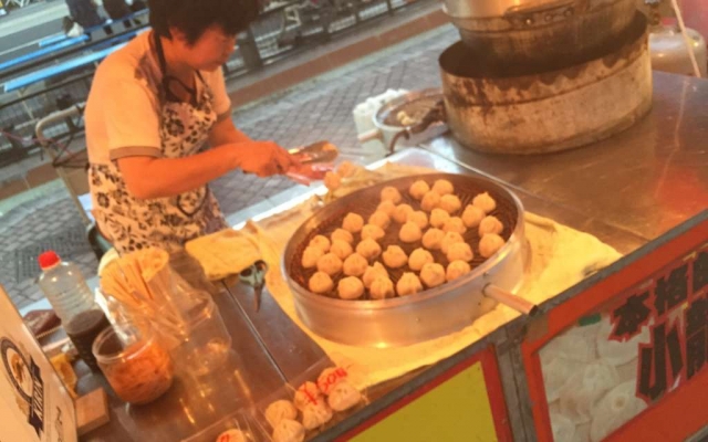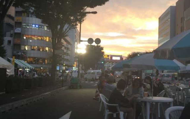 日曜日は大通り全体がすずめ踊りの流し場所になるのですが、そこにテーブルと椅子が置かれていて、ゆっくり座って食べることができました。