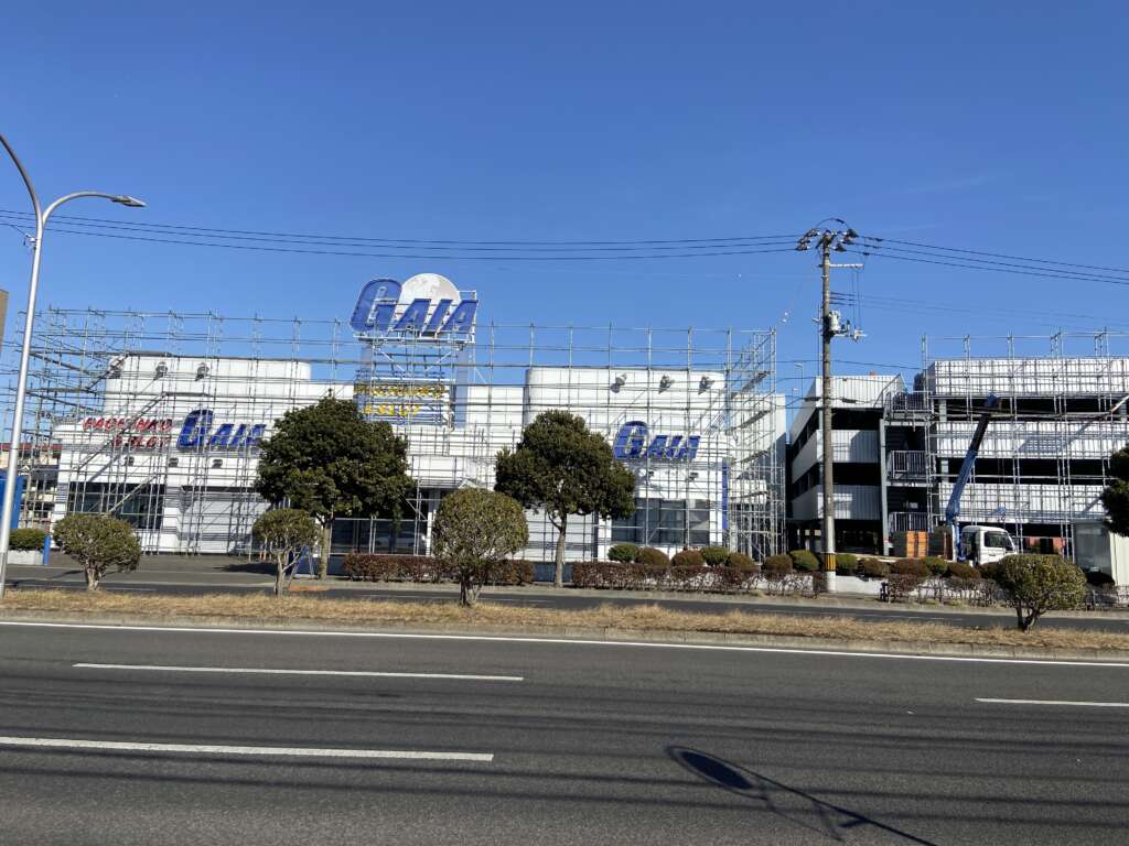 店舗に足場だけなら看板を掛け変えてマルホンとして営業するのかと思っていたのですが、駐車場まで足場を掛けたということはそうではないのかな?